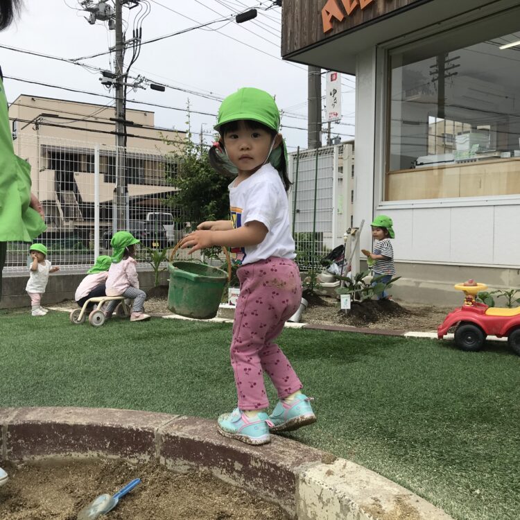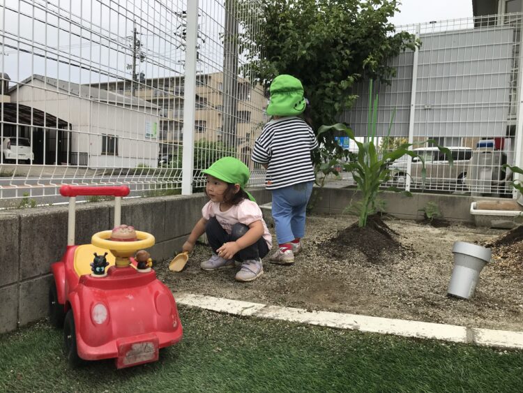 お砂場は少し濡れていて、子ども達のおままごとには最適です。