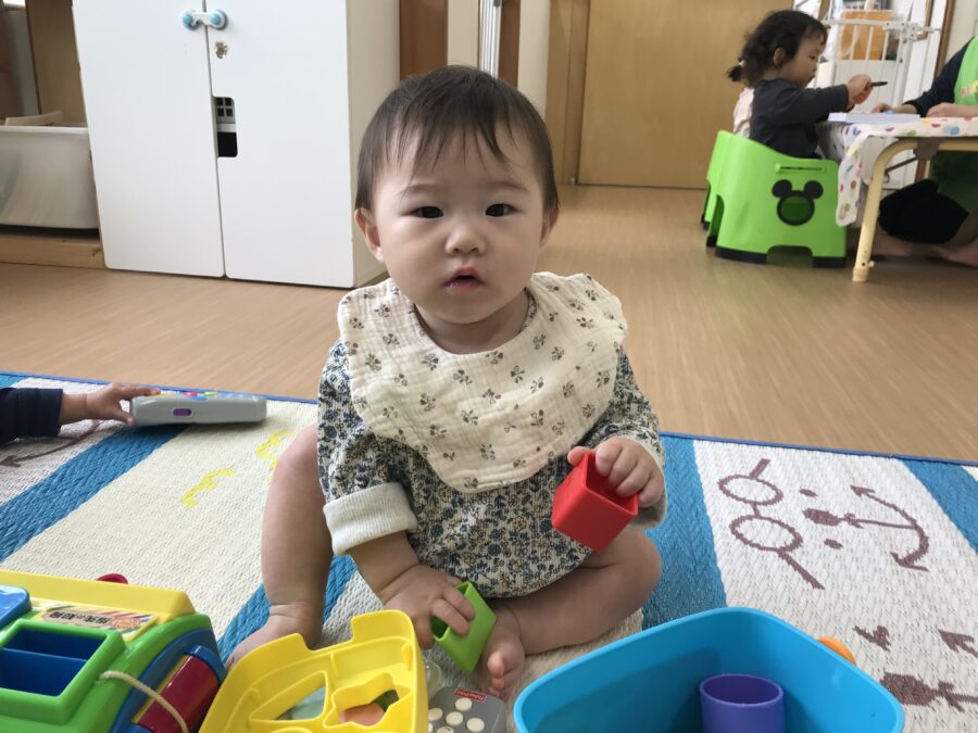 両手でおもちゃを合わせて