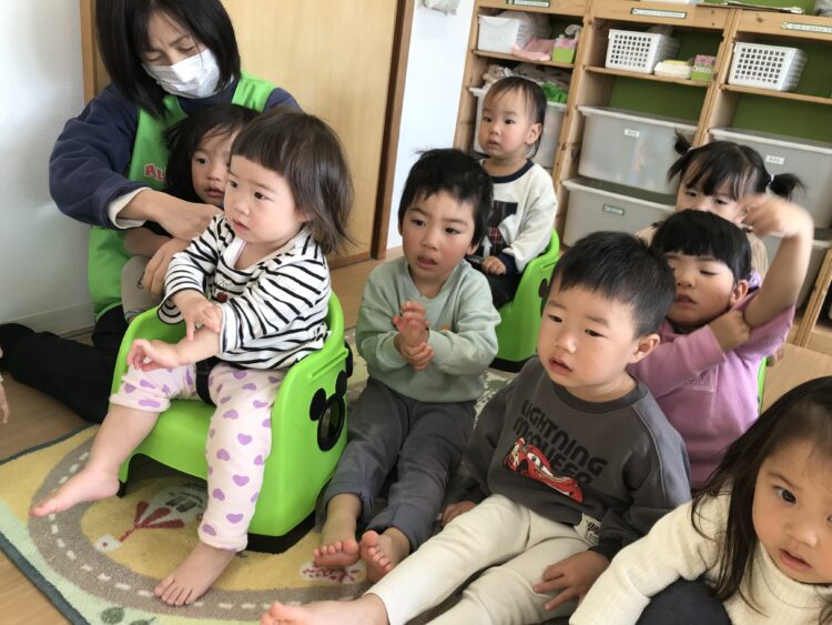 今度は「手洗いの歌」に合わせて、洗う練習をしてみました🎶