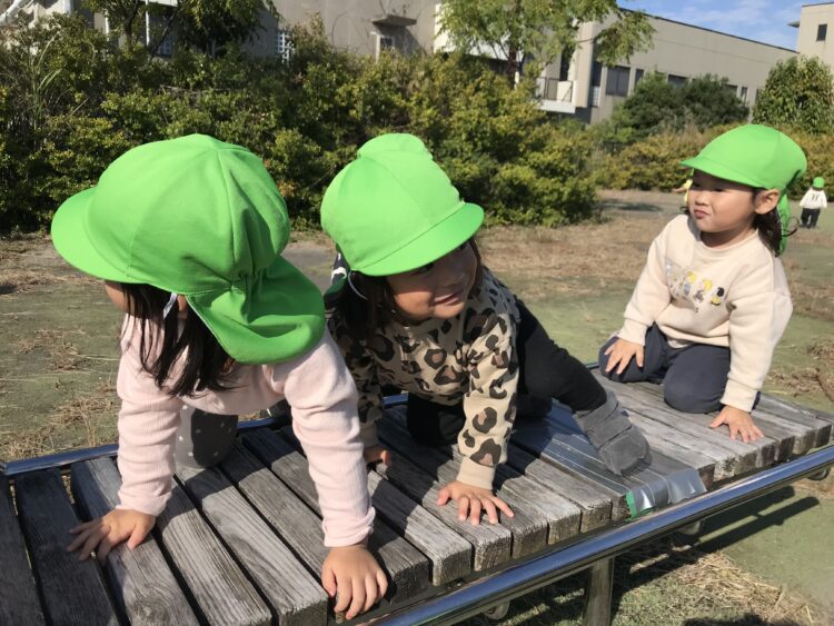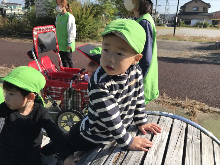 散歩👟 今日は広場までお散歩🚶♀️ 太陽の日差しがぽかぽか暖かくて気持ちよかったね😊 いつもとは違う遊具にみんなうれしそうでした🎶 かけっこもして、 体をいっぱい動かして楽しかったね😆 カテゴリ: 勝川園 タグ: