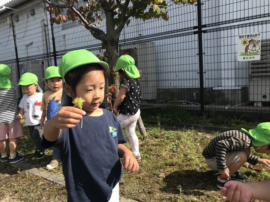たんぽぽや木の実が落ちてて
