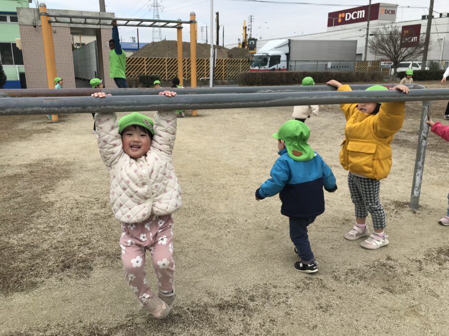 棒にぶら下がったりして