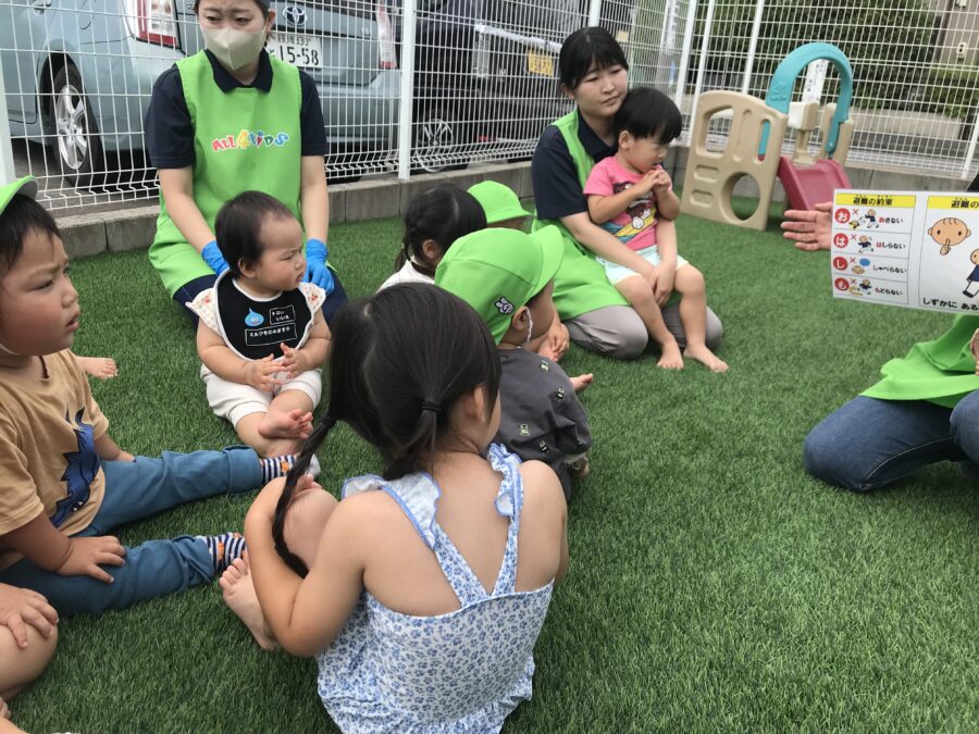 お話をしてしまったりすることなく、静かに避難する事が出来ました👏  保育士からの「おはしも」のお話も静かに聞き、とっても素敵でした✨