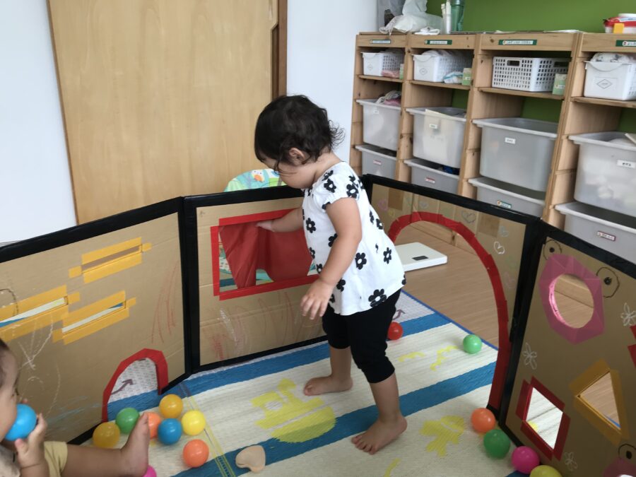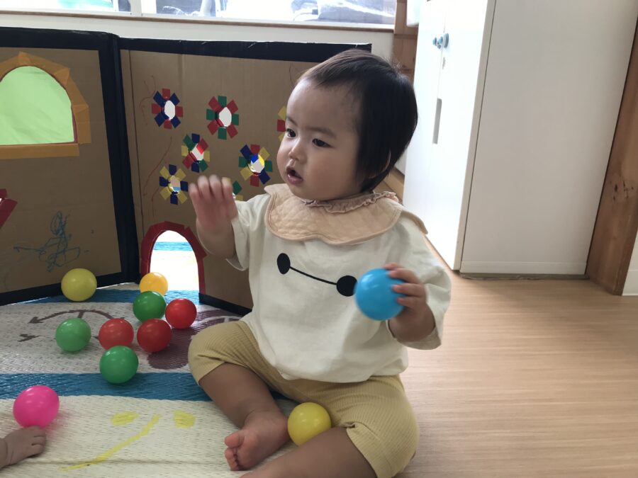 今日は雨が降っていたのでお部屋の中で遊びました☔️ ボールを持って投げてみたり カーテンをめくってボールを出したりして遊びました😊 お部屋の中でもいっぱい遊べて、楽しかったね🎶 カテゴリ: 勝川園 タグ: