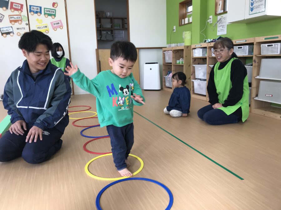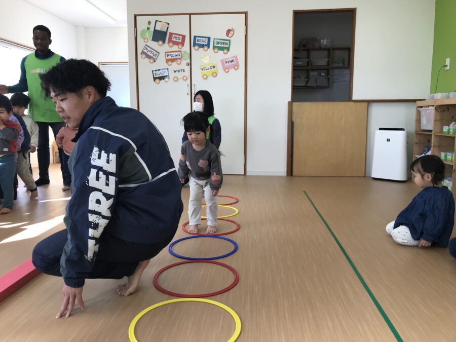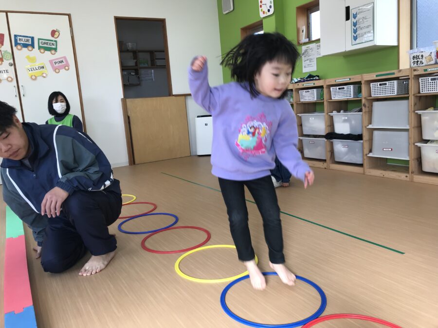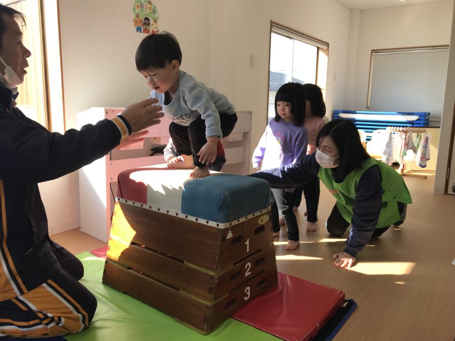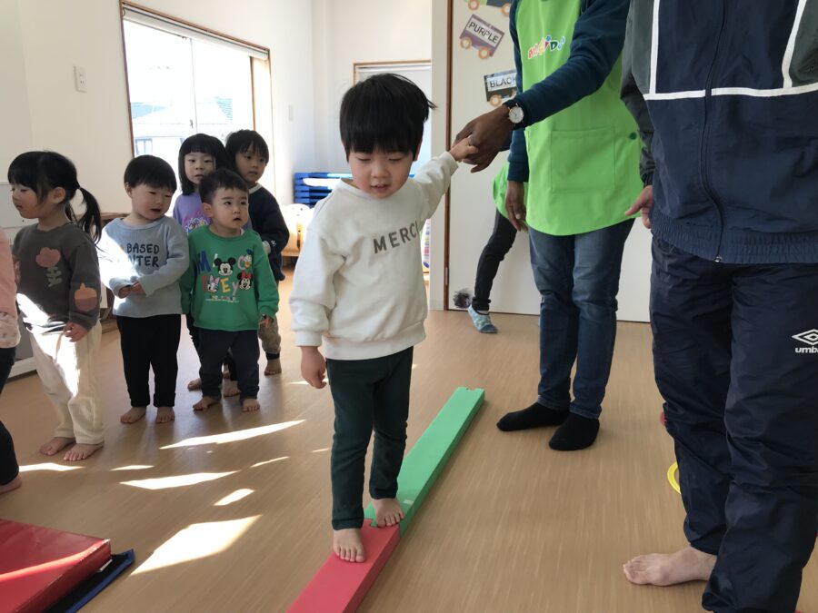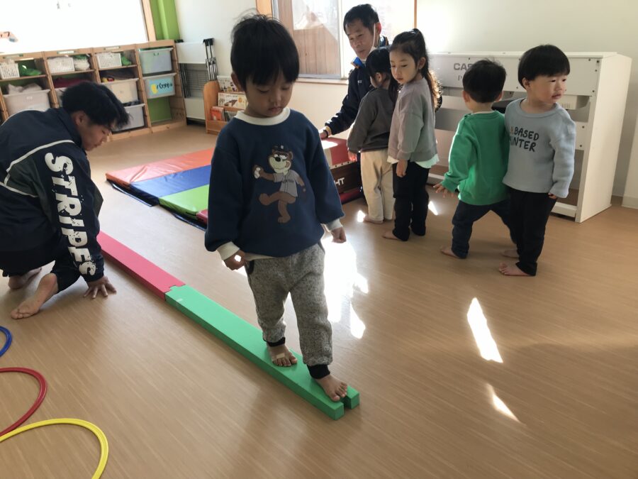今日は跳び箱、平均台、輪っかジャンプのサーキットに挑戦❗️
