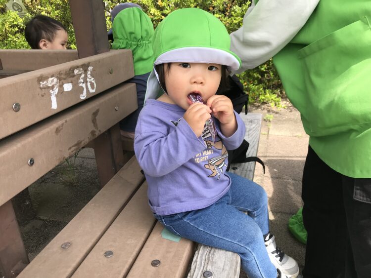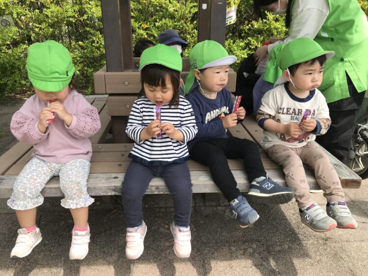頑張って広場まで歩いたので、みんなでゼリーを食べました♪