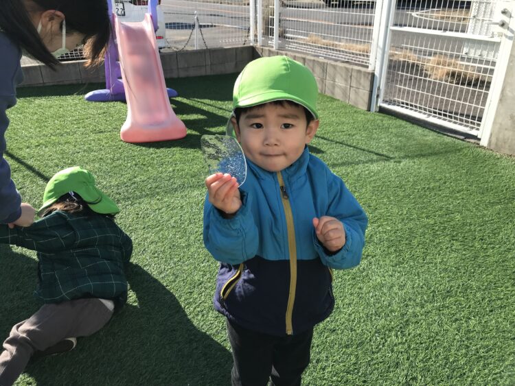 氷ができていたよ🧊 今日は風が冷たい日でしたが、子ども達は元気いっぱい😊 滑り台のところに氷🧊ができており、「なにこれー!」や「冷たいねー!」と触って楽しんでいました🎶 今日もたくさん遊んだね😊 カテゴリ: 勝川園 タグ: