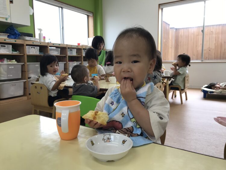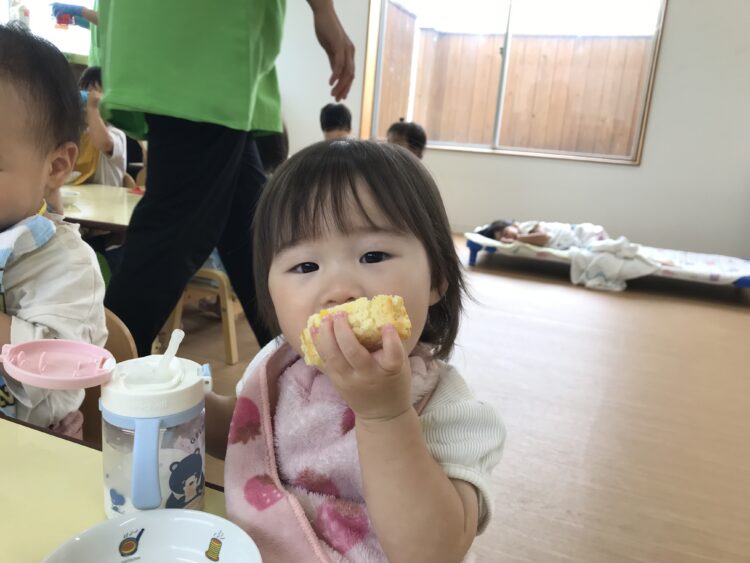 おやつは 畑で採れたトウモロコシ入りのパウンドケーキ