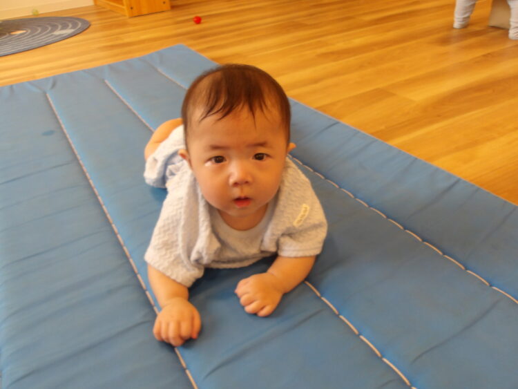 ひよこ組さんもマットでハイハイ、ずり這いしたり