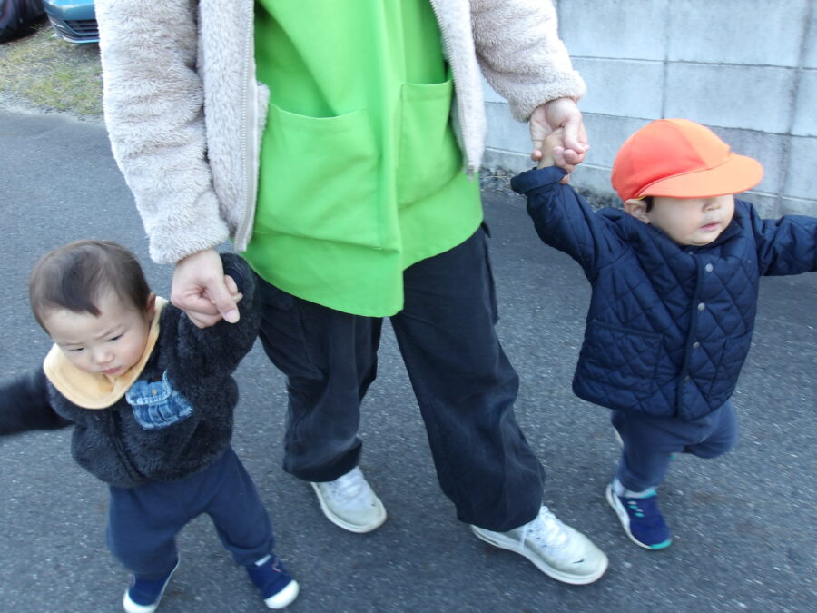 ひよこぐみさんは、保育園の周りをお散歩してから、園庭で遊びましたよ![]()