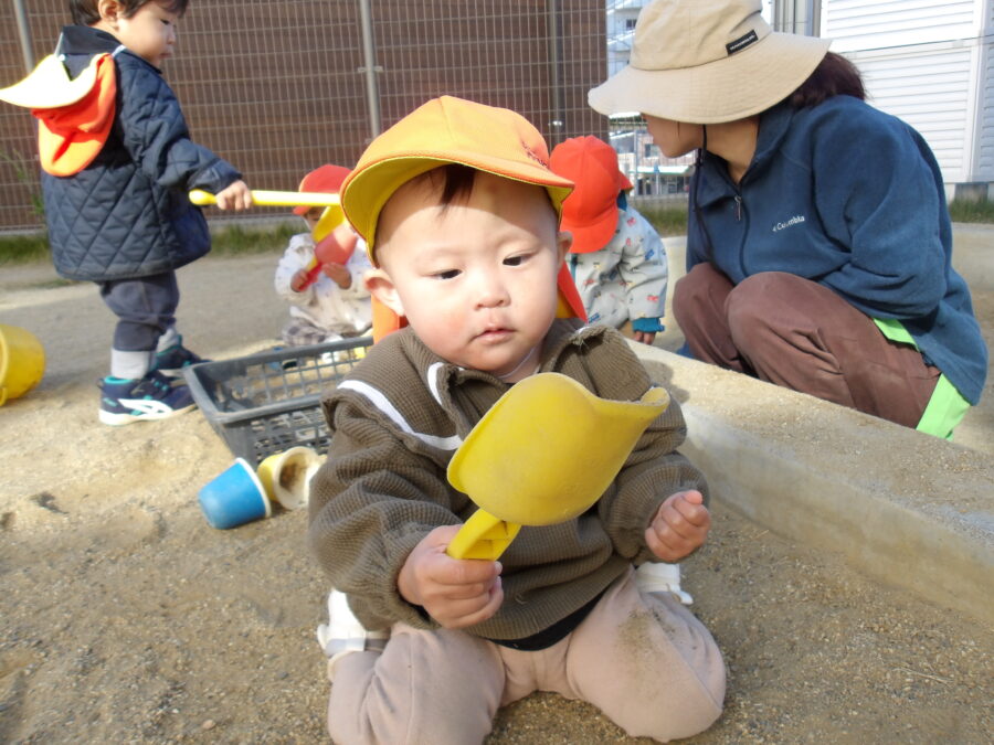 園庭では、お砂場で遊んだり、押し車を押したりたくさん動いて遊べるようになってきました![]()