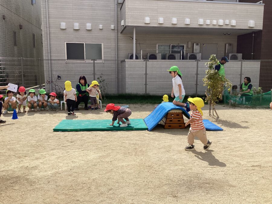 お返事ができたり、踊ることができたり、走ったり…お友だちに「こっちだよ!」と優しく声をかけて助けあっていた姿に早くも感動しました![]()