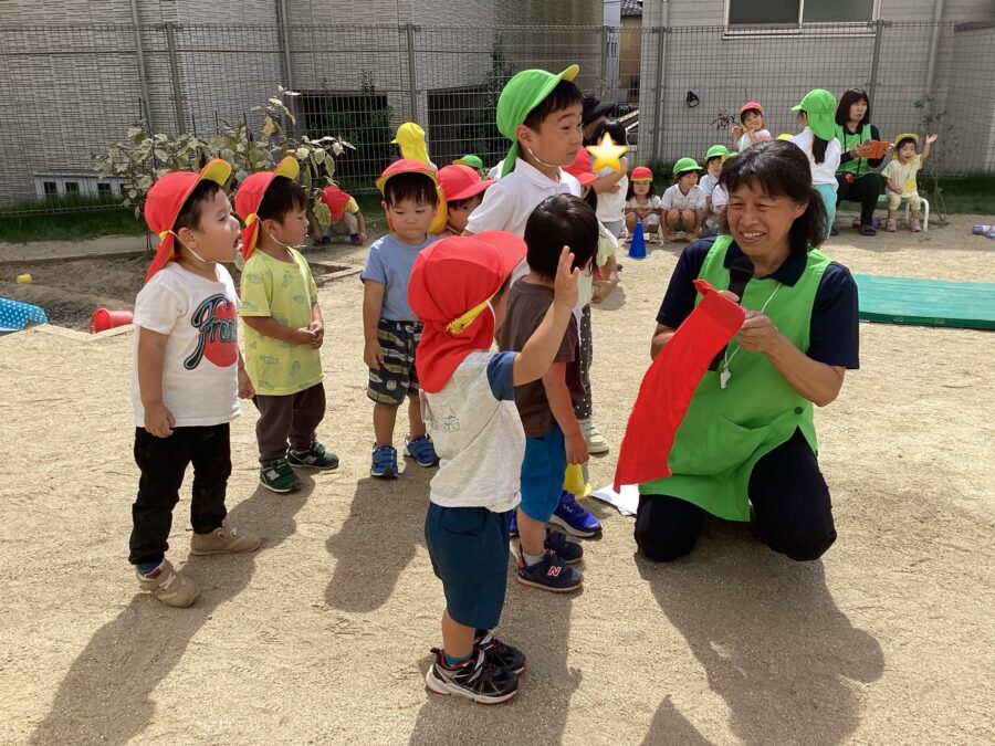 今日はいいお天気の中、みんなで運動会ごっこをしました![]()