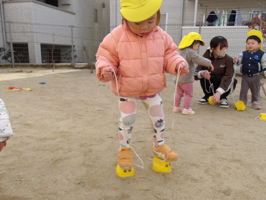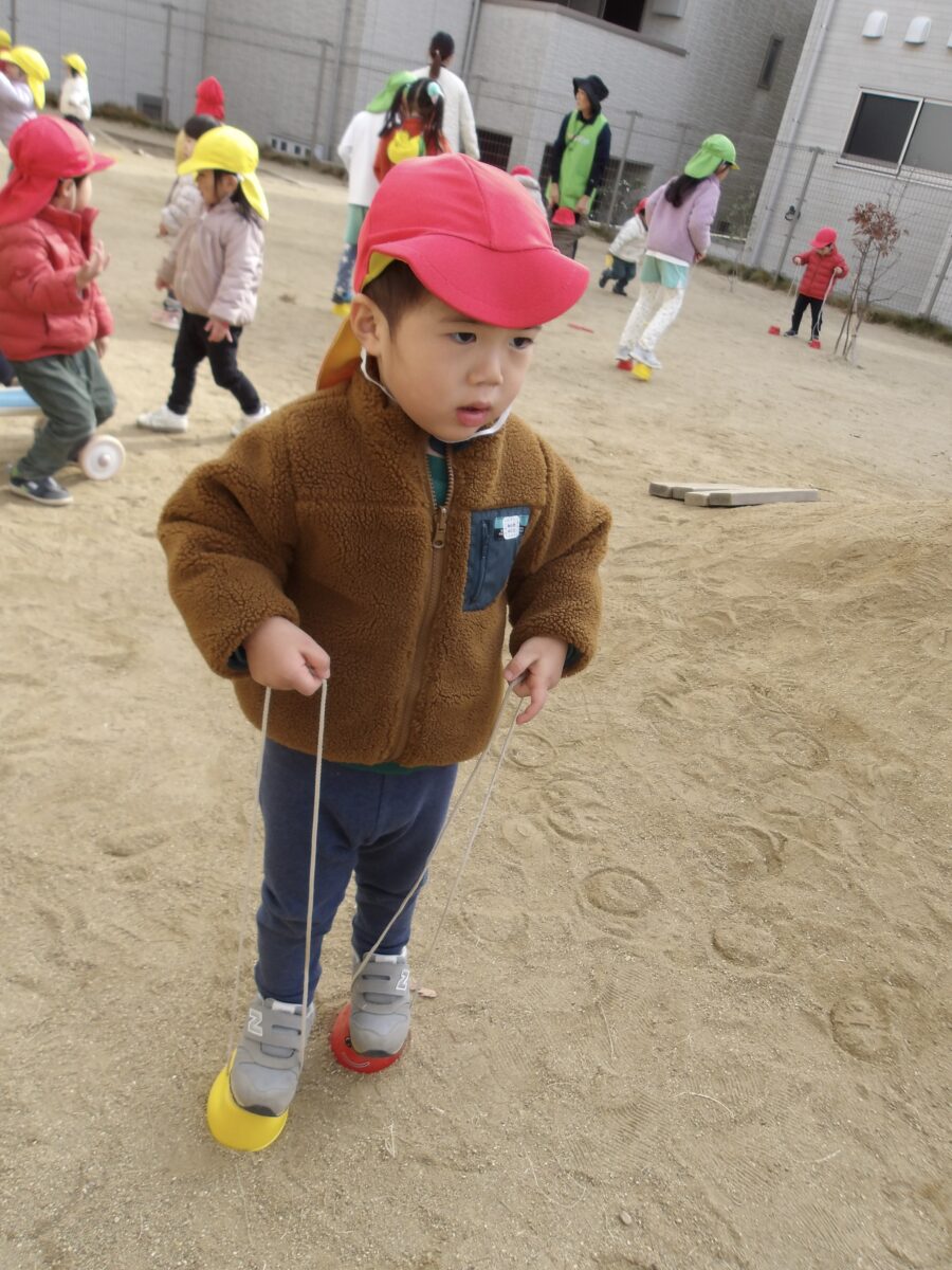 保育士が出しているのを見ると、お砂や他の遊びをしていた子どもたちも私も私も、僕も僕も〜!とたくさんしたいという姿が見られました!保育士に足の使い方や乗り方を教えてもらいながら、自分なりにたくさん繰り返して遊んでいましたよ