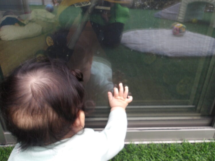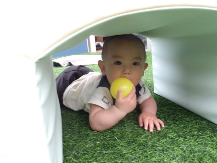 トンネルの下から笑顔をで保育士の方を見てくれました![]()
