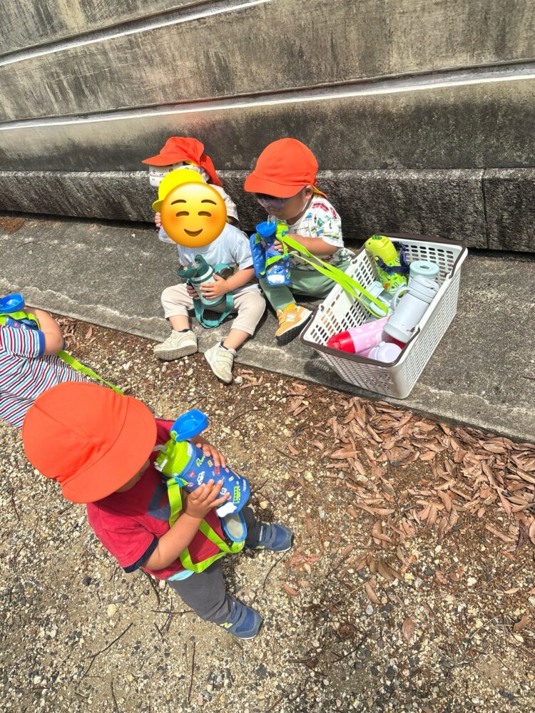 お気に入りのどんぐりを見つけたり、穴を掘って虫を探す姿も見られました✨  みんなでお茶休憩も🍵