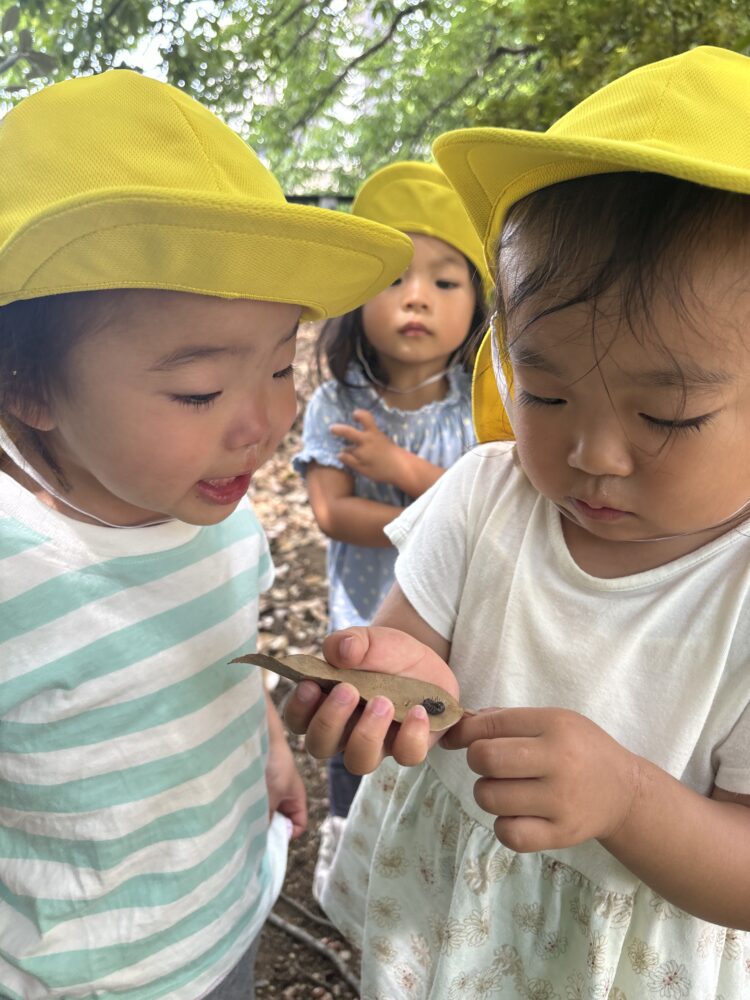 「ダンゴムシ探す!」とリクエストする子が多く、先生と一緒に探していました😊