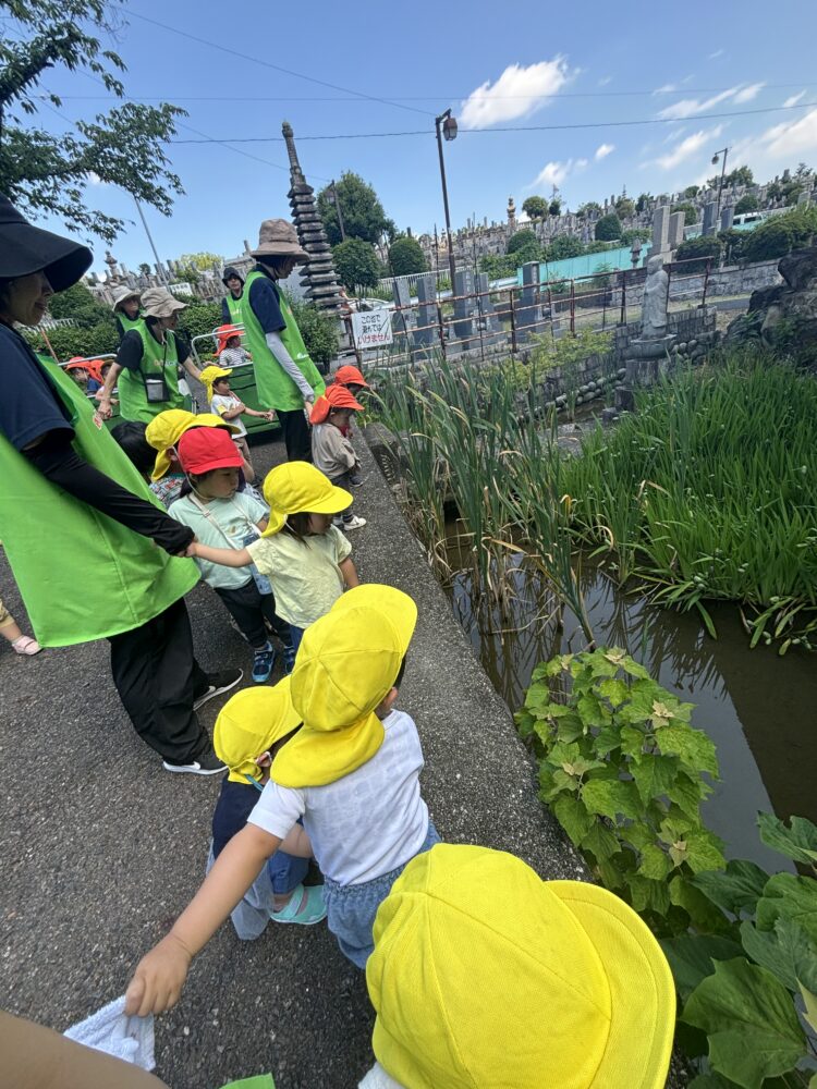 あひる組、うさぎ組で保育園の周りを歩きました。