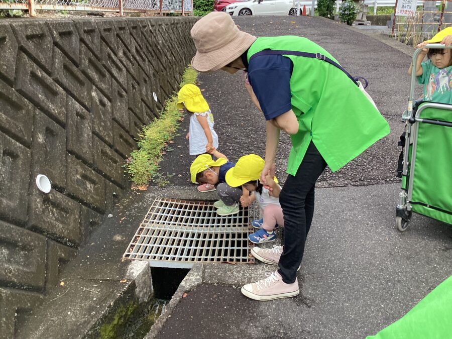 「ここにもお水ある!」とマンホールにも何かいないか探していた子どもたちです![]()