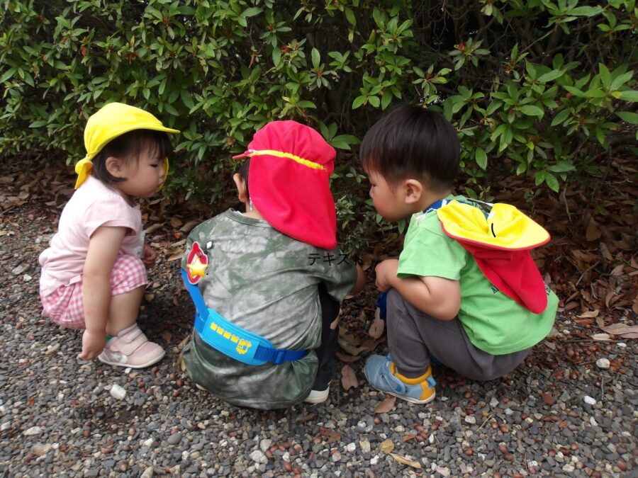 舎利殿にはどんぐり、葉っぱ、ダンゴムシがたくさんいます。子どもたちは大喜びでした。