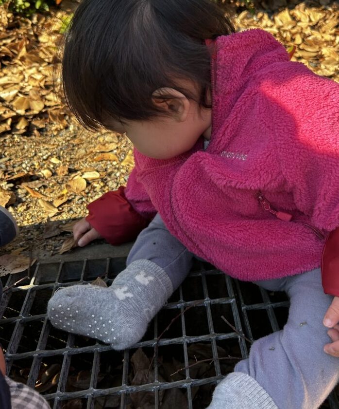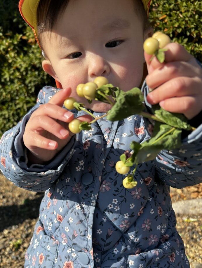 石をたくさん見つけて保育士に渡してくれたり、葉っぱを見つけて、じーっと見たりしていましたよ