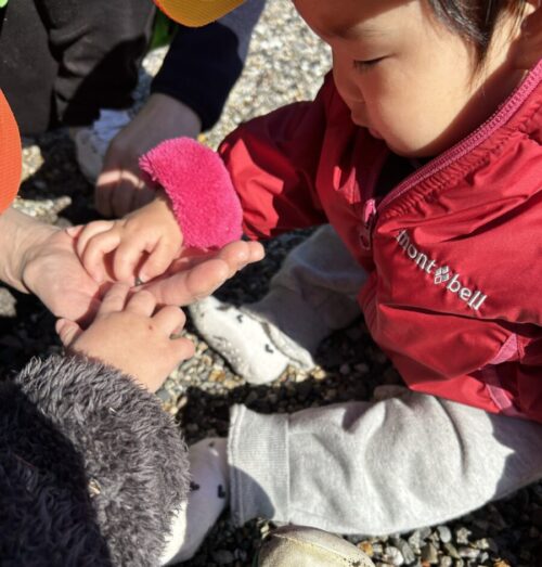 沢山動けるようになって、自分で行きたい所まで動いて、探索していましたよ!ダンゴムシを見つけると、興味津々触ったり、じーっと見たりしていました