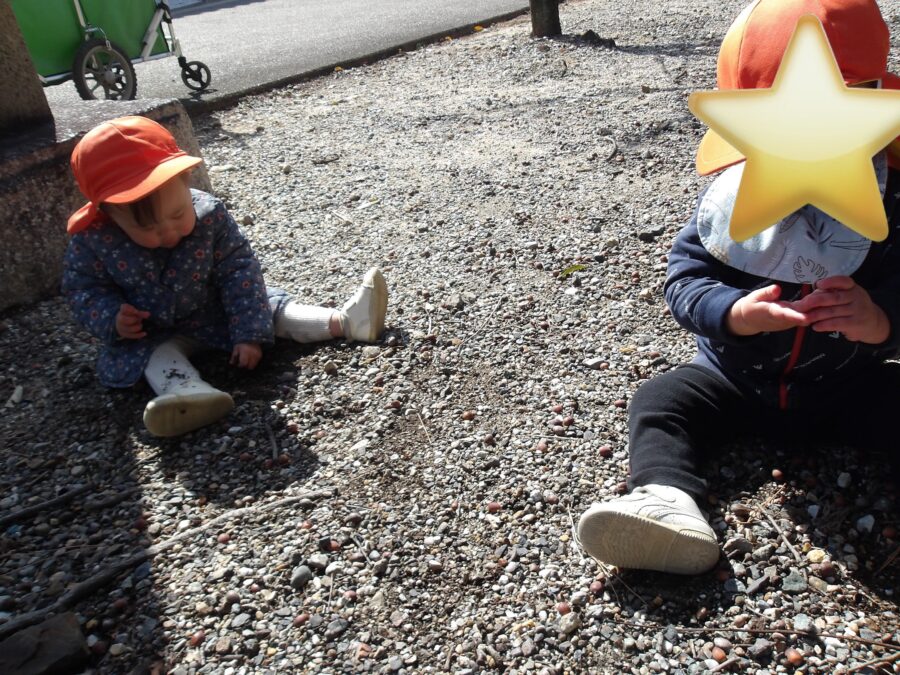 2人仲良く座って並んで、石を触ったり、土を触ったりしていましたよ![]()