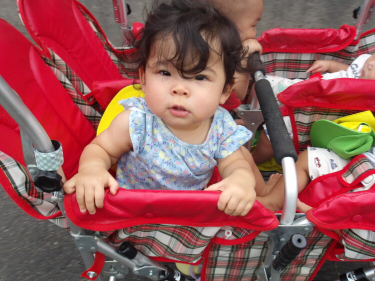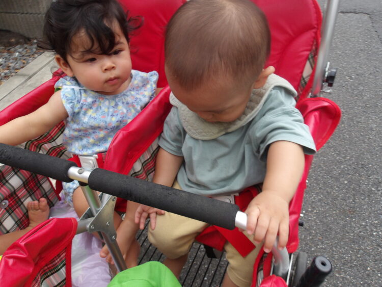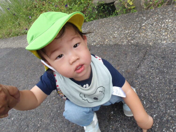 お散歩に行ったよ お散歩に行きましたバスや車を目で追ったり周りをキョロキョロとしていました 何か見つけたようです 取ることができず残念がっていました 散歩が楽しく喜んでいましたよ来週もたくさん遊ぼうね カテゴリ: 覚王山(0〜1歳) タグ: