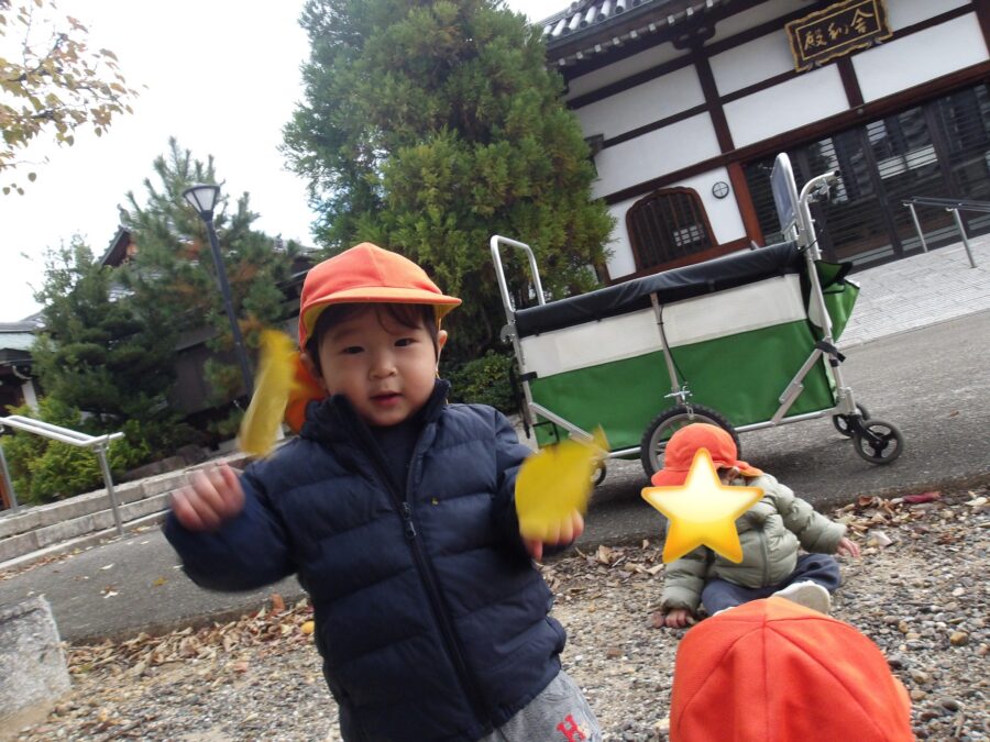 「何かあるかなぁ〜」と覗いていましたよ お地蔵さんの前で頭をペコペコご挨拶もできるひよこぐみさんです 葉っぱを見つけてフリフリ今週もたくさんお外で遊べて楽しかったね段々と寒くなってくるので、体調崩さないように元気いっぱいで保育園に来てね