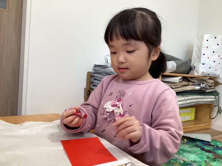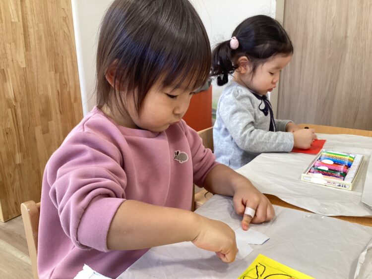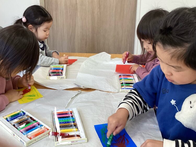 糊で塗り塗り&クレヨン🖍️で描き描き。。