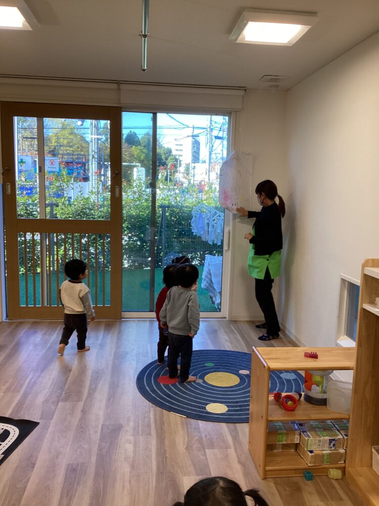 色々なところに貼ってこんなのができたんだ〜と感心しているようでした!自分の描いた絵を見つけたり、じーっと見ていましたよ👀