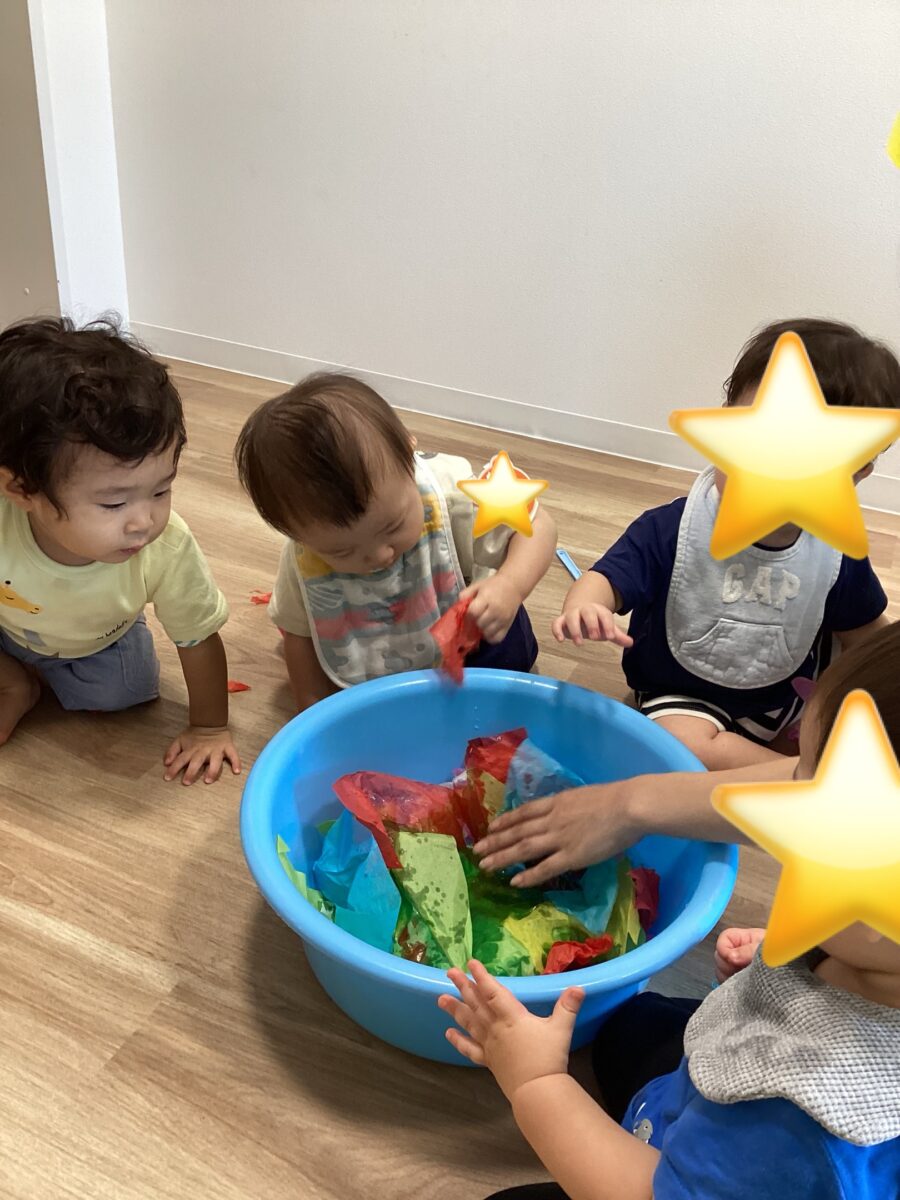 乾いてくるとパラパラとした感触に!トロトロした感触が苦手なお友達も触れて楽しめていましたよ![]()