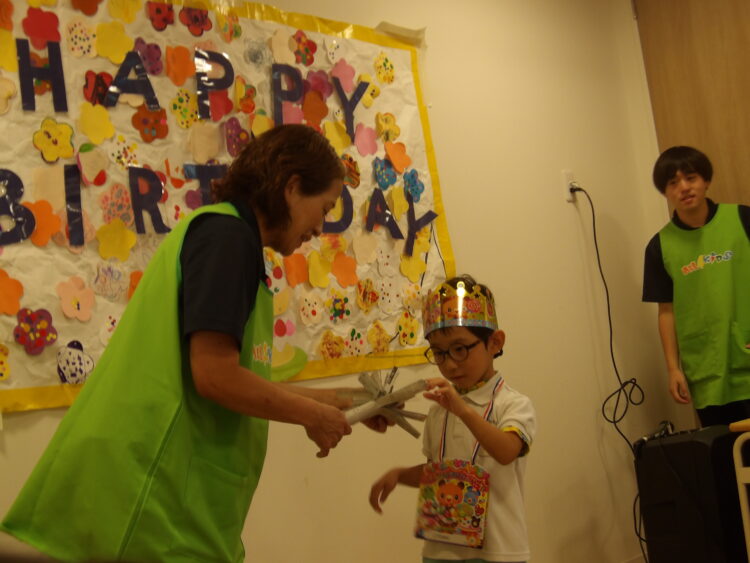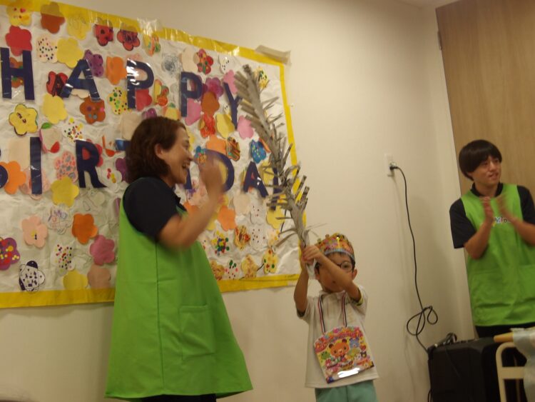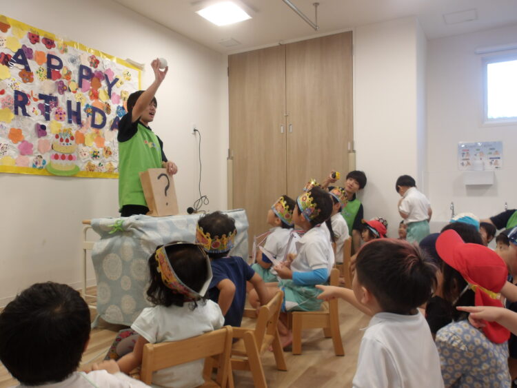 ヴァイオリンの演奏に合わせていろいろな歌を歌ったり、先生の出し物のマジックに参加したりしました!