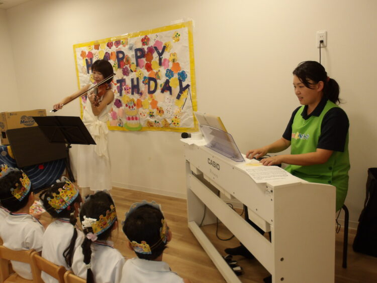 1人ずつ立ってお名前、何歳になったか、好きなものや食べ物などを発表しました✨大きい声で上手に言えていました!! 次にバイオリンとピアノの演奏がありました🎻