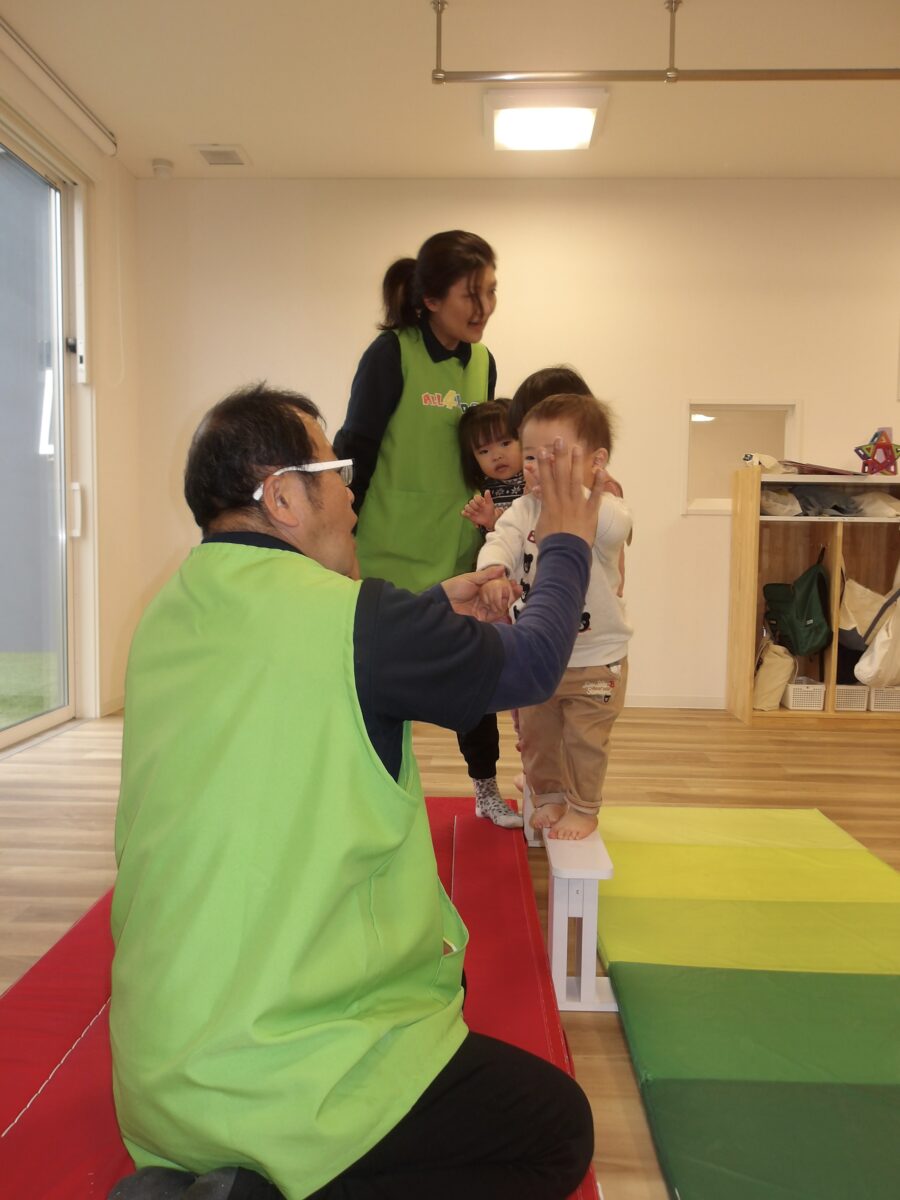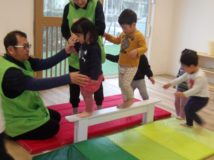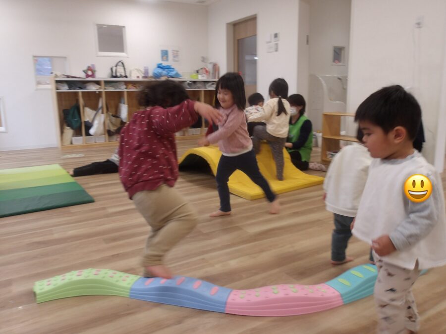 保育士の手を持ってゆっくりと進んでいる子や、自分で足で跨いで上手く足を使って進んでいる子もいましたよ〜〜