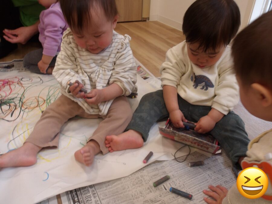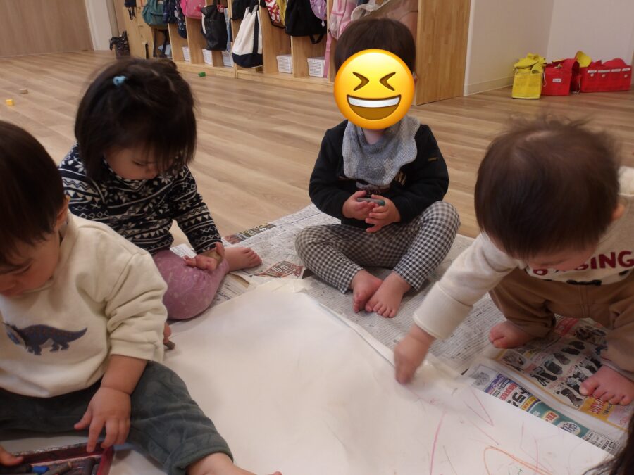 ひよこさんあひるさんは大きな紙にクレヨン🖍️で描き描きして楽しんでいましたよ〜〜