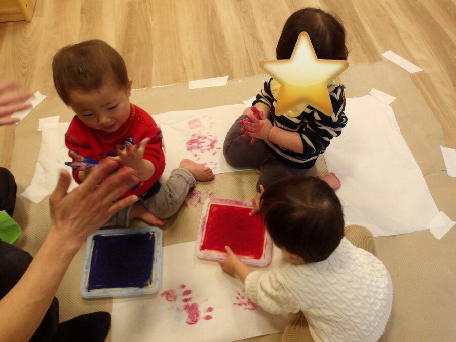 今日も雨降りの1日でしたねひよこ組のお友だちも外を見ながらお外に行きたい様子でした今日はスタンプ遊びと風船遊びをしました手にインクがついたのを、初めは少し嫌そうな顔をしていたお友だちもいましたが、じーっと見たり、紙にポンポンとおしていましたよどんどんとダイナミックに遊べるようになってきましたよ  風船では早く欲しいよ〜と保育士にアピールしていましたよ お腹に入れてポンポンとたたいて喜んでいましたよ いないいないばあとのぞいていましたよ明日は晴れるといいですね晴れたらお外で遊ぼうね