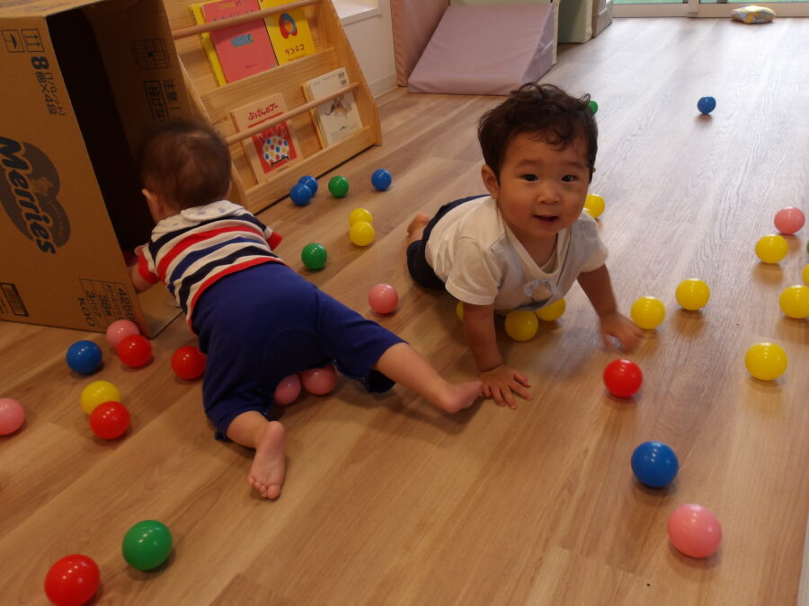 ひよこ組さんは、プールボール遊びをしましたよ〜!