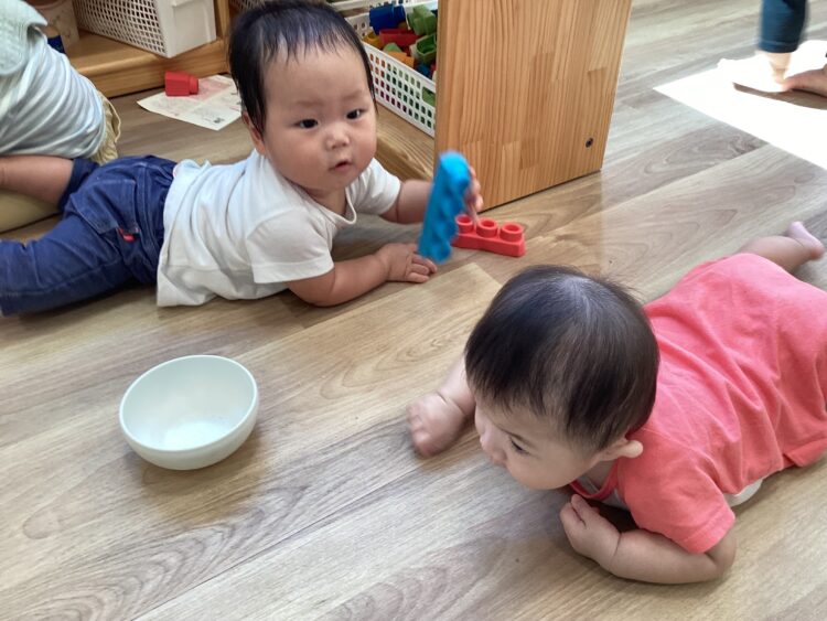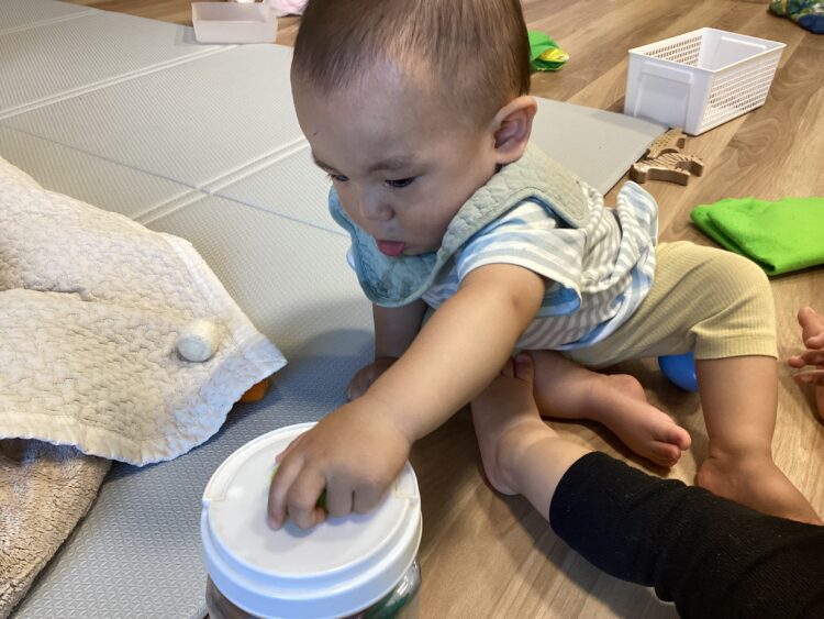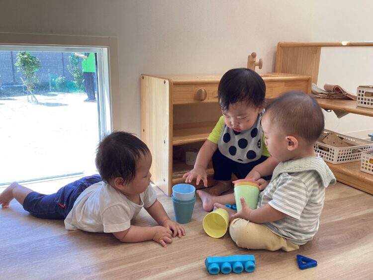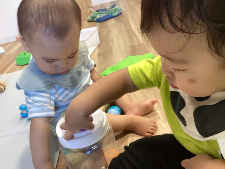 ポットン落としが落ちると手をたたいて保育士の方を見て喜んでいました![]()