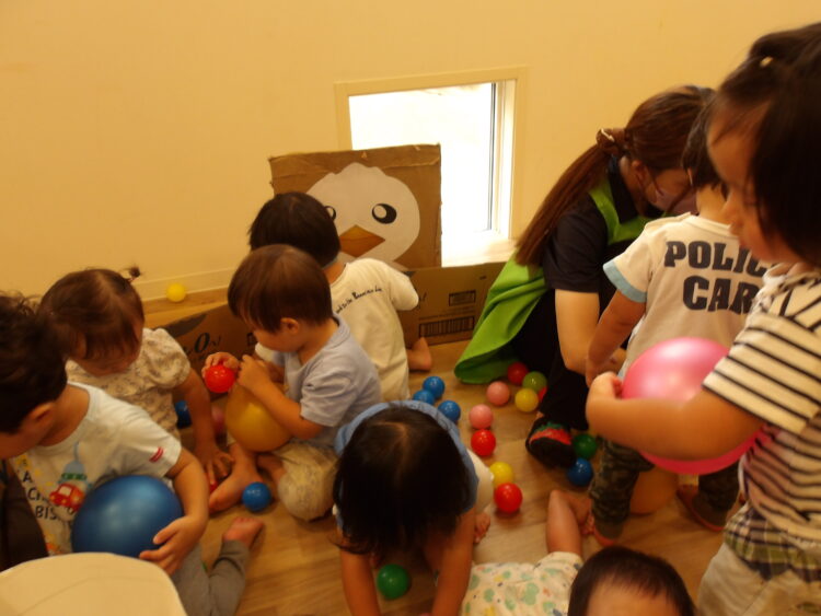 あひるさんや、うさぎさんにボールのご飯をあげるんだよ!と見せてくれます😊 みんなで楽しく遊べました😊
