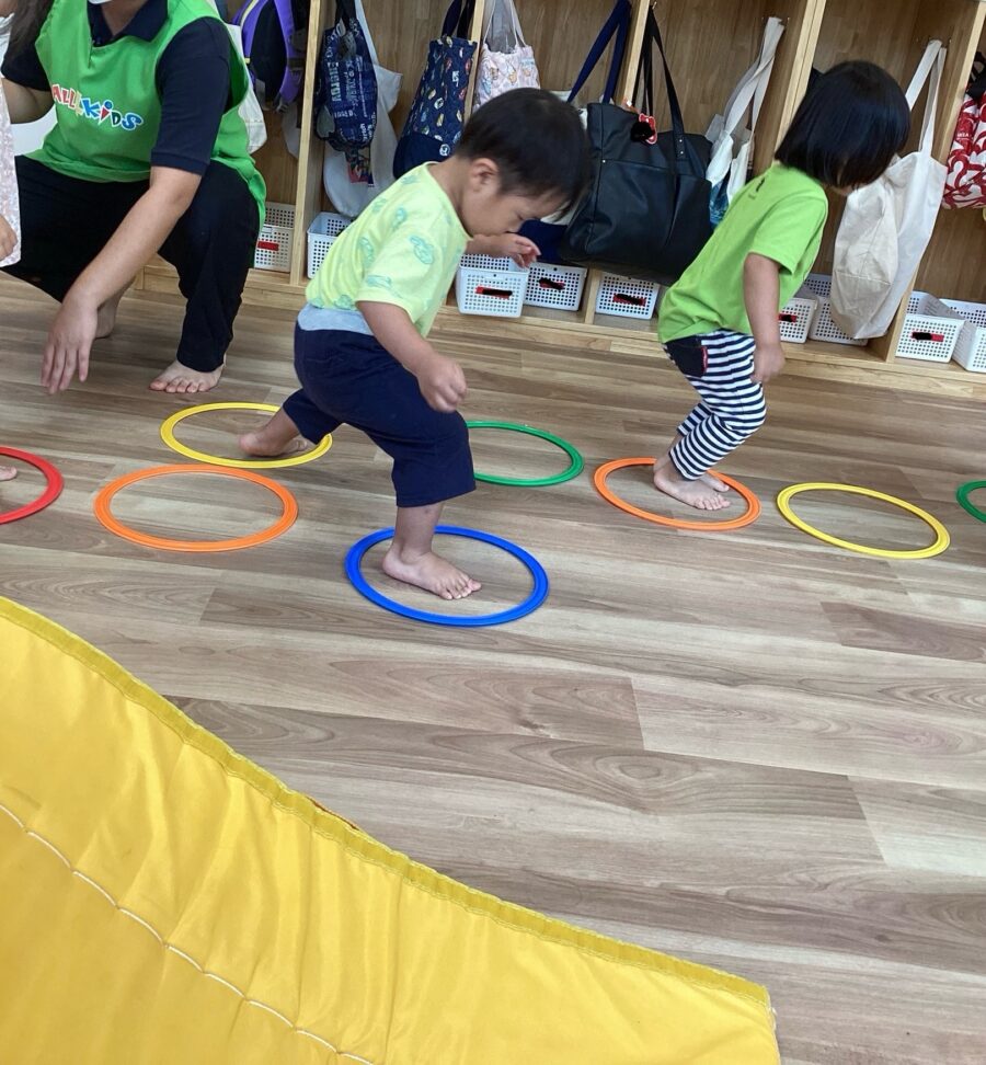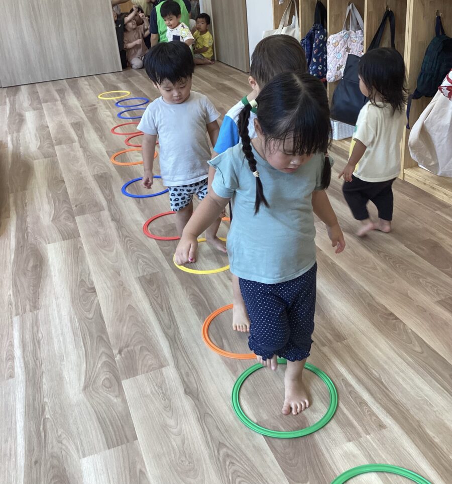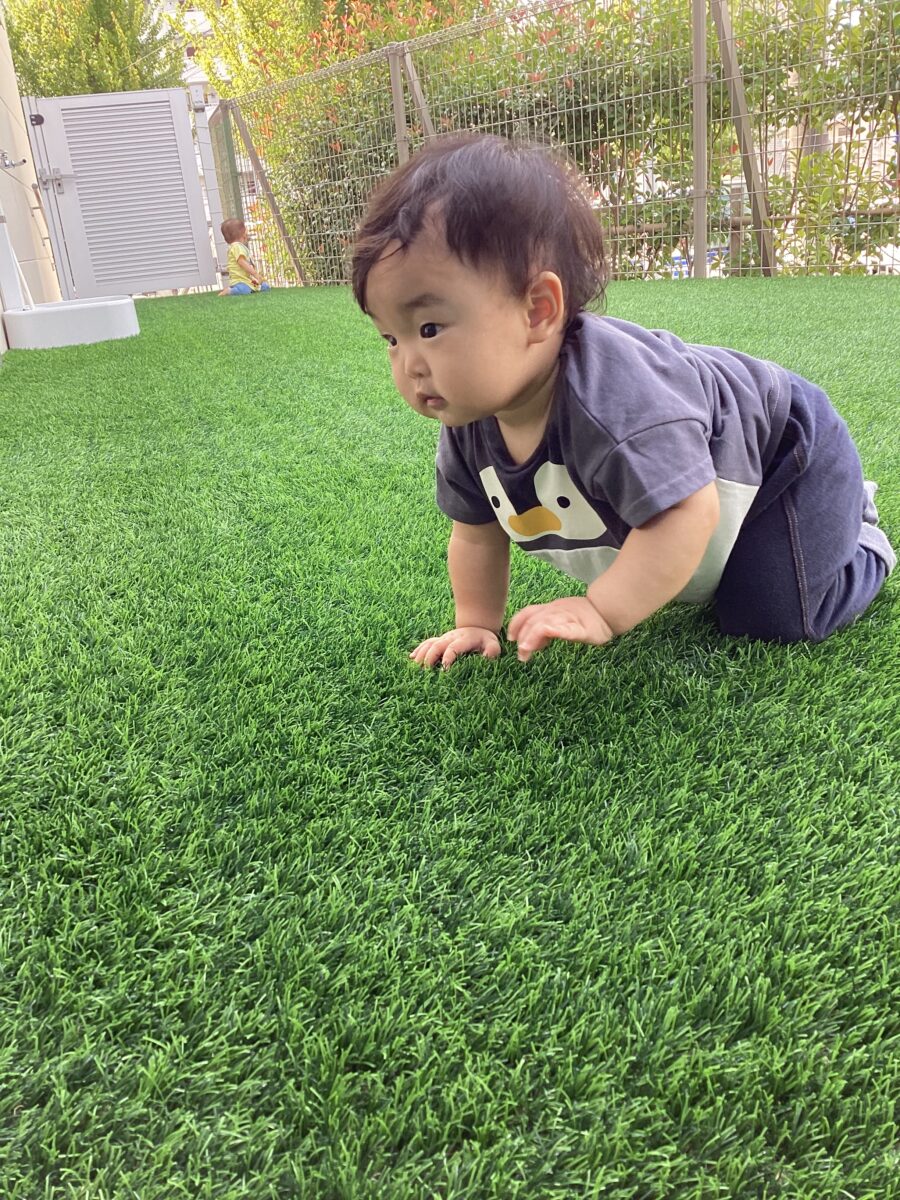 テラスでごろごろ転がったり、園庭あそび、室内サーキットもしました!