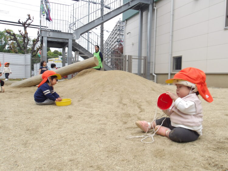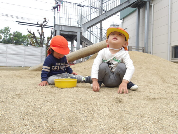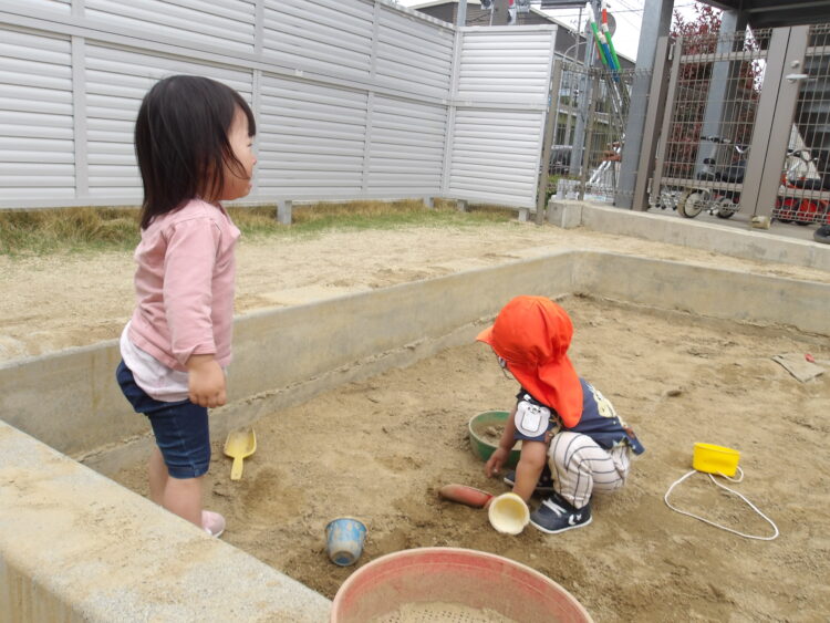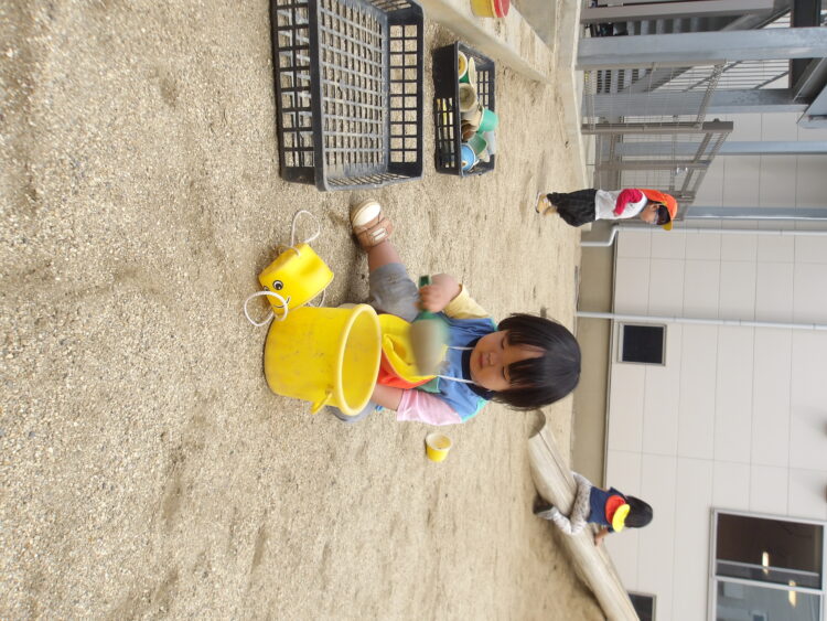 砂場でスコップを使って遊ぶのが段々上手になりました。