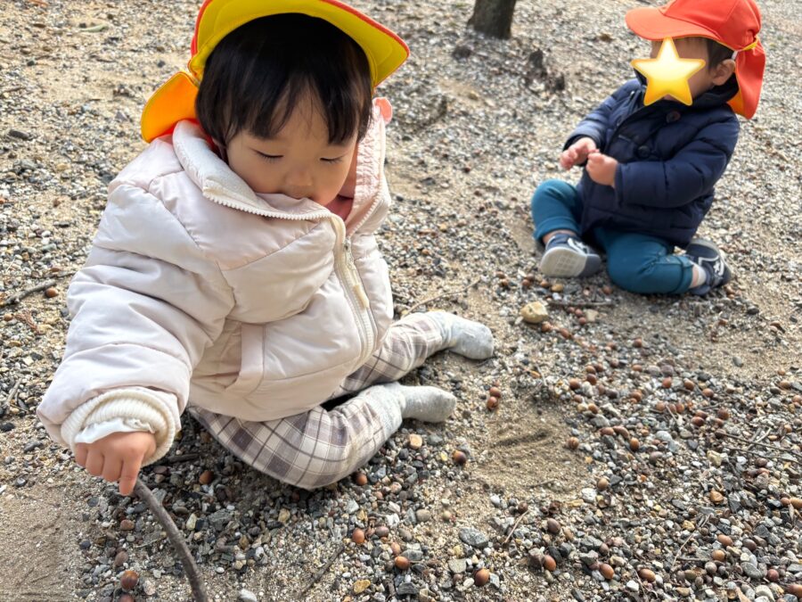 大きいどんぐり、小さいどんぐり、いろんなどんぐりを見つけていました♪