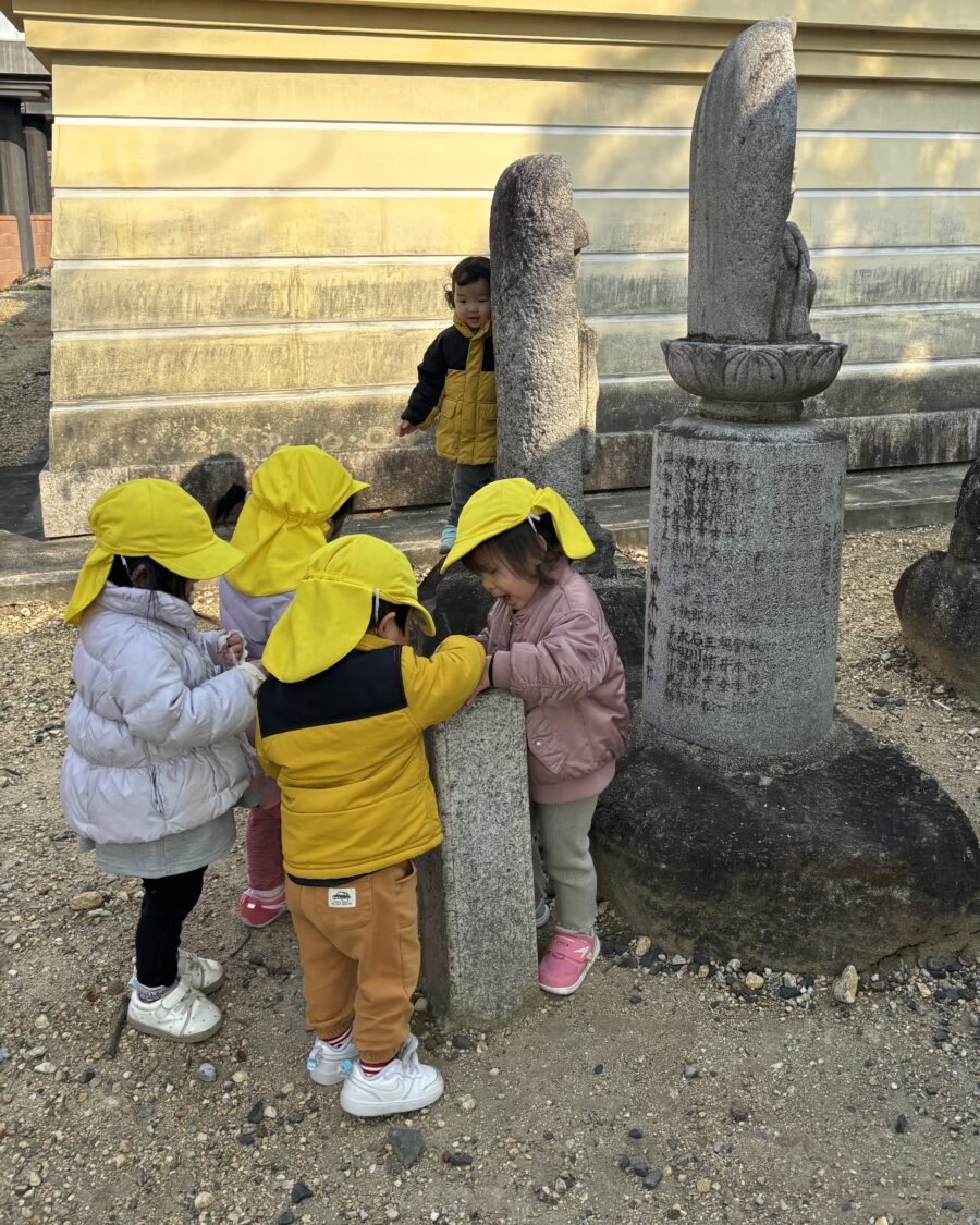今日はひよこさんとあひるさんで日泰寺に遊びに行った後、園の周りをお散歩しました!