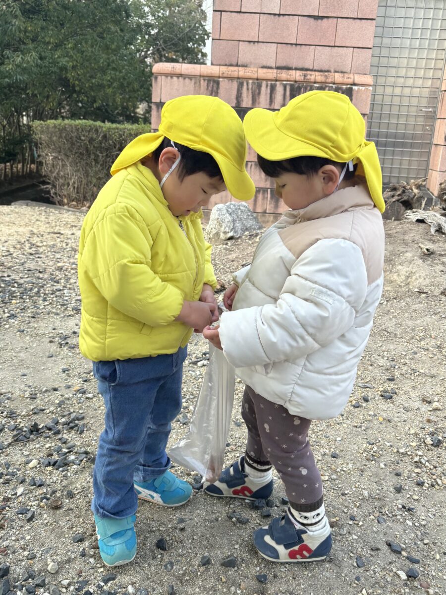「どんぐり袋に入れる?」とあひるさんのお友だちが優しく声をかけてくれました