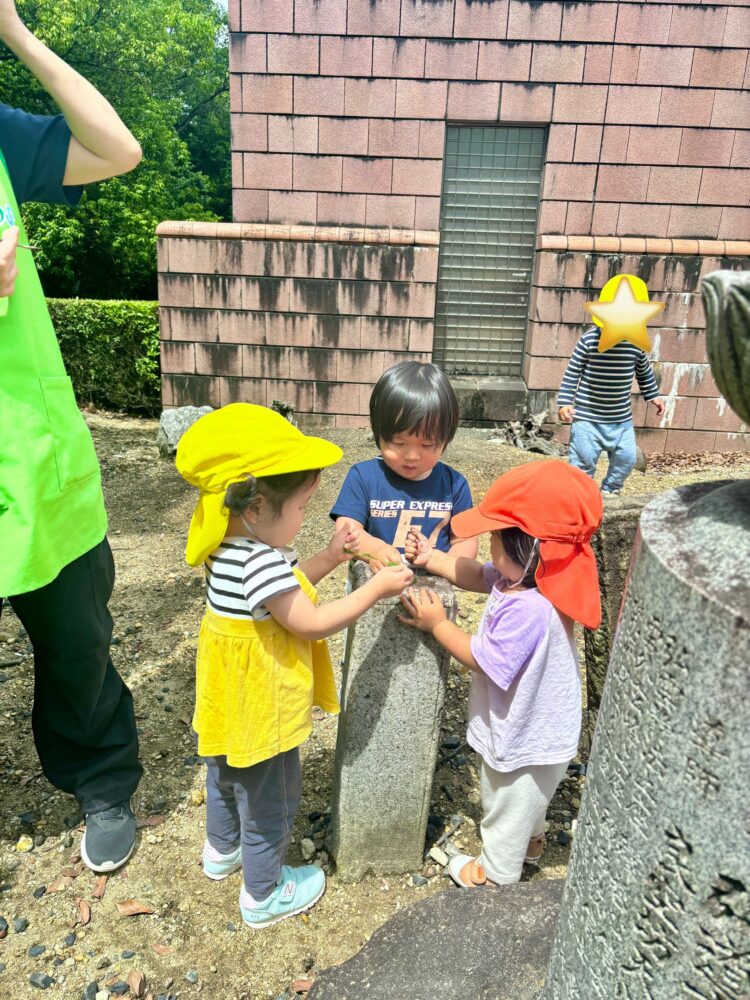 ダンゴムシを見つけて嬉しそうに皆んなに見せてあげると皆んなも探していました。