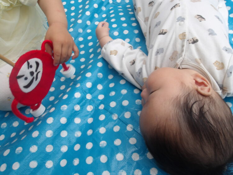 だるまさんを見るとみんな寄って来てだるまさんを触っていました![]()