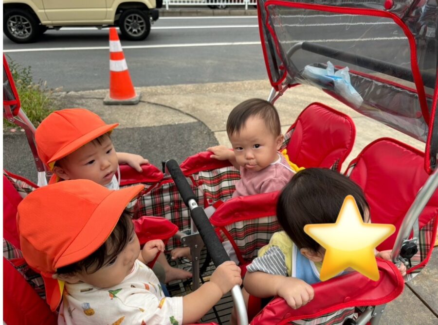 大事に握りしめて途中で落ちてしまっても「あっち!」と指差しで拾ってもらい、保育園に着くまで握りしめて持って帰ってこれました![]()