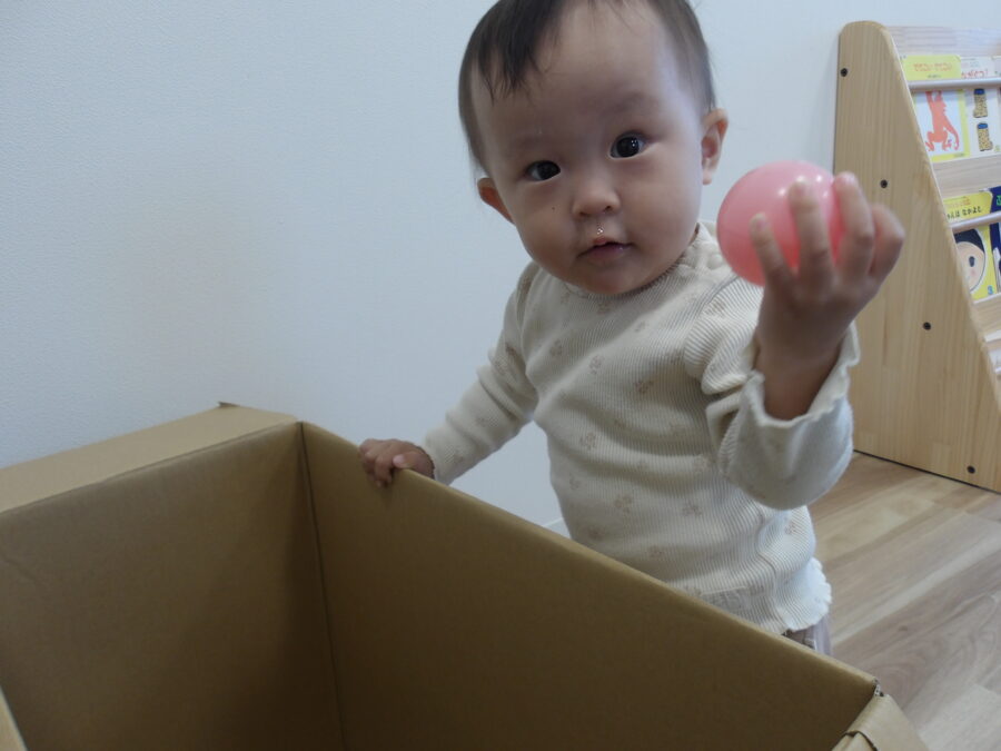 ボールをダンボールに入れてね!と言うと、ちゃんと理解して沢山入れてくれました![]()