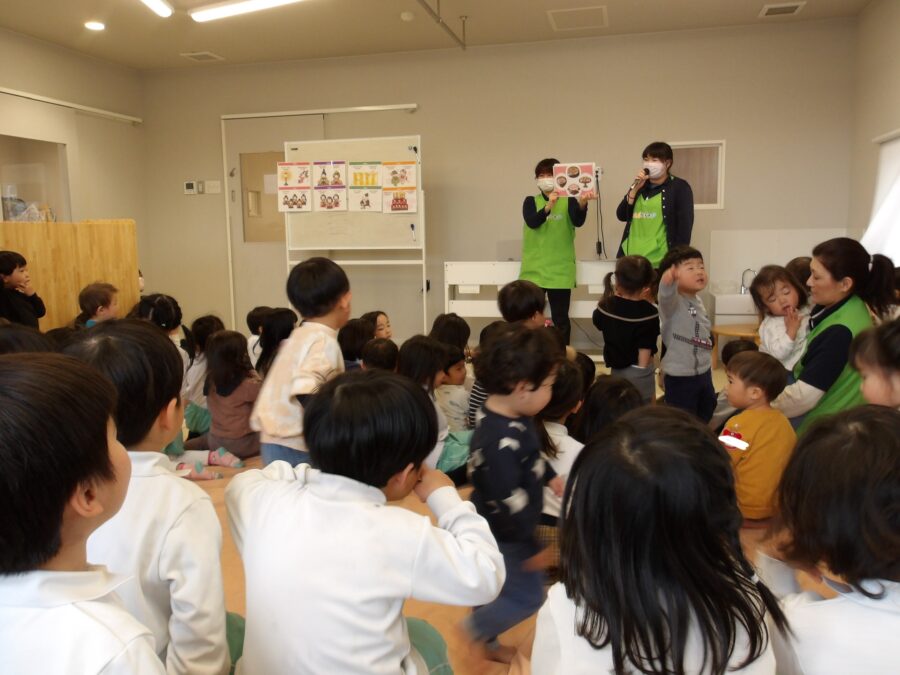 ひなまつりにまつわるお話を聞いたり、お人形のそれぞれの役割を知った子どもたち。